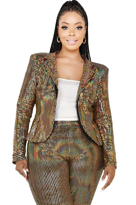 Plus Disco Metallic Sequins 2 Piece Jacket Set