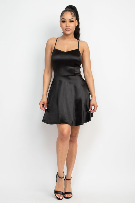 Light Green Woven Puff Short Sleeve Open Back Flare Mini Dress